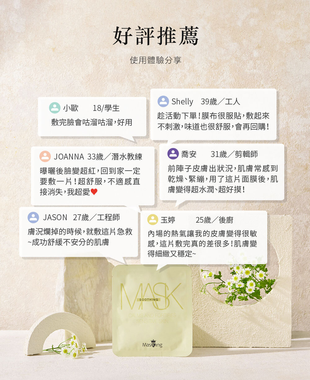 成分皆以天然植萃配方製成,通過SGS 安全檢驗,敏感肌與孕期也能安心使用。