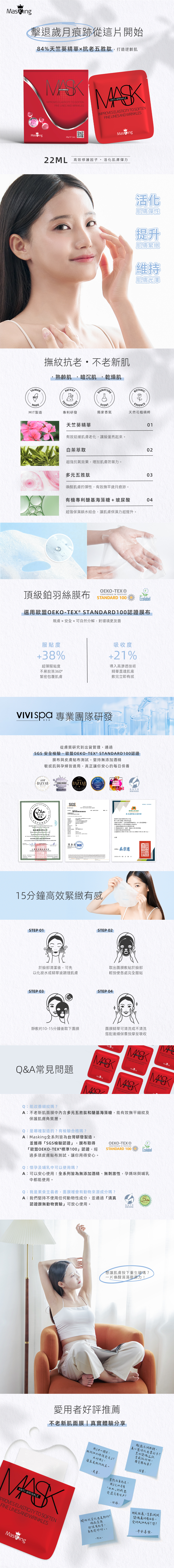 使用方式:臉部清潔後,取出面膜敷貼於臉部,輕按各處使其完全服貼,靜待10-15分鐘後取下面膜,輕柔按摩吸收,亦可清洗或不清洗,依個人喜好為主即可。使用頻率建議一週3-4次,欲加強者可天天使用。