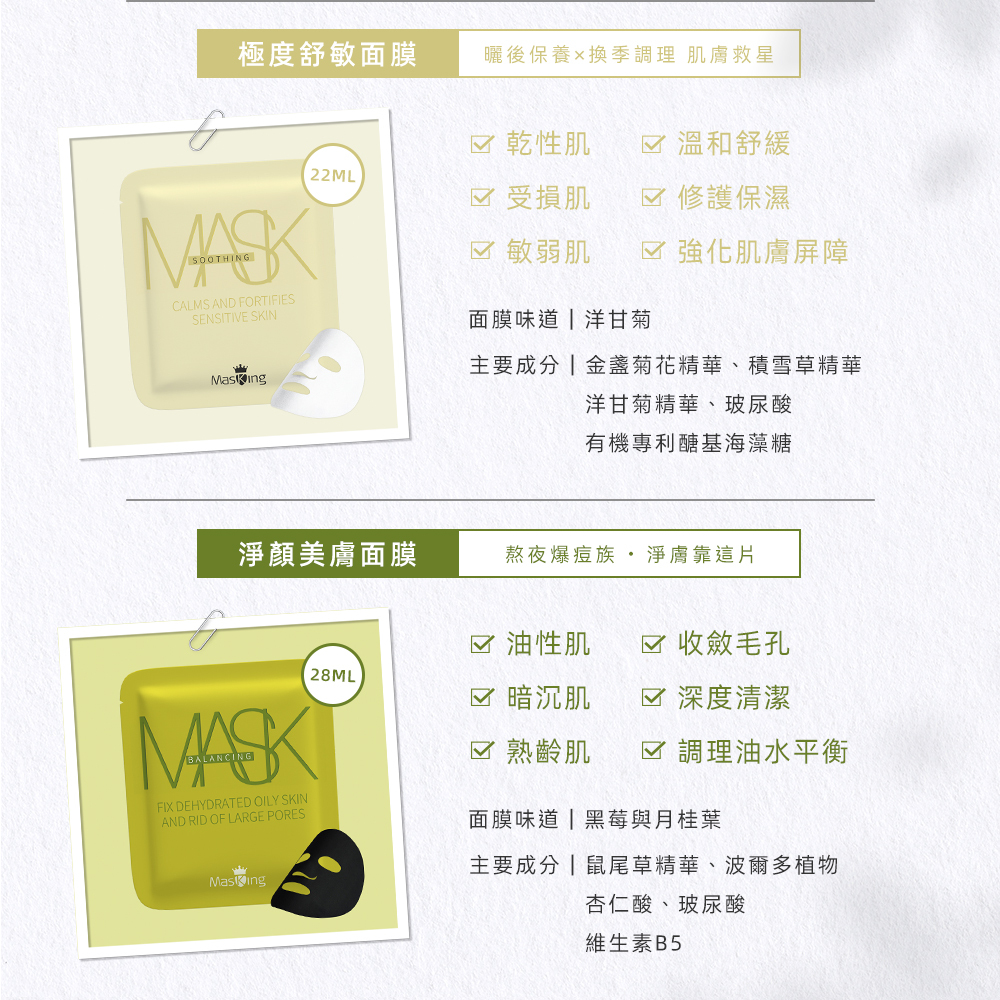 從深層保濕、油水平衡到提亮膚色與舒緩敏感,每一次敷用都能感受肌膚的明亮彈潤。