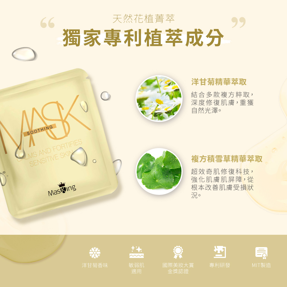 主要成分:積雪草、洋甘菊花水、天然有機專利醣基海藻糖