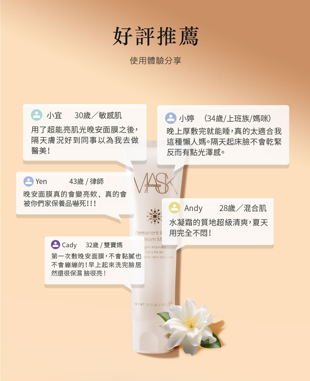(備註:晚安膜建議於"面膜後"、"睡前"使用)