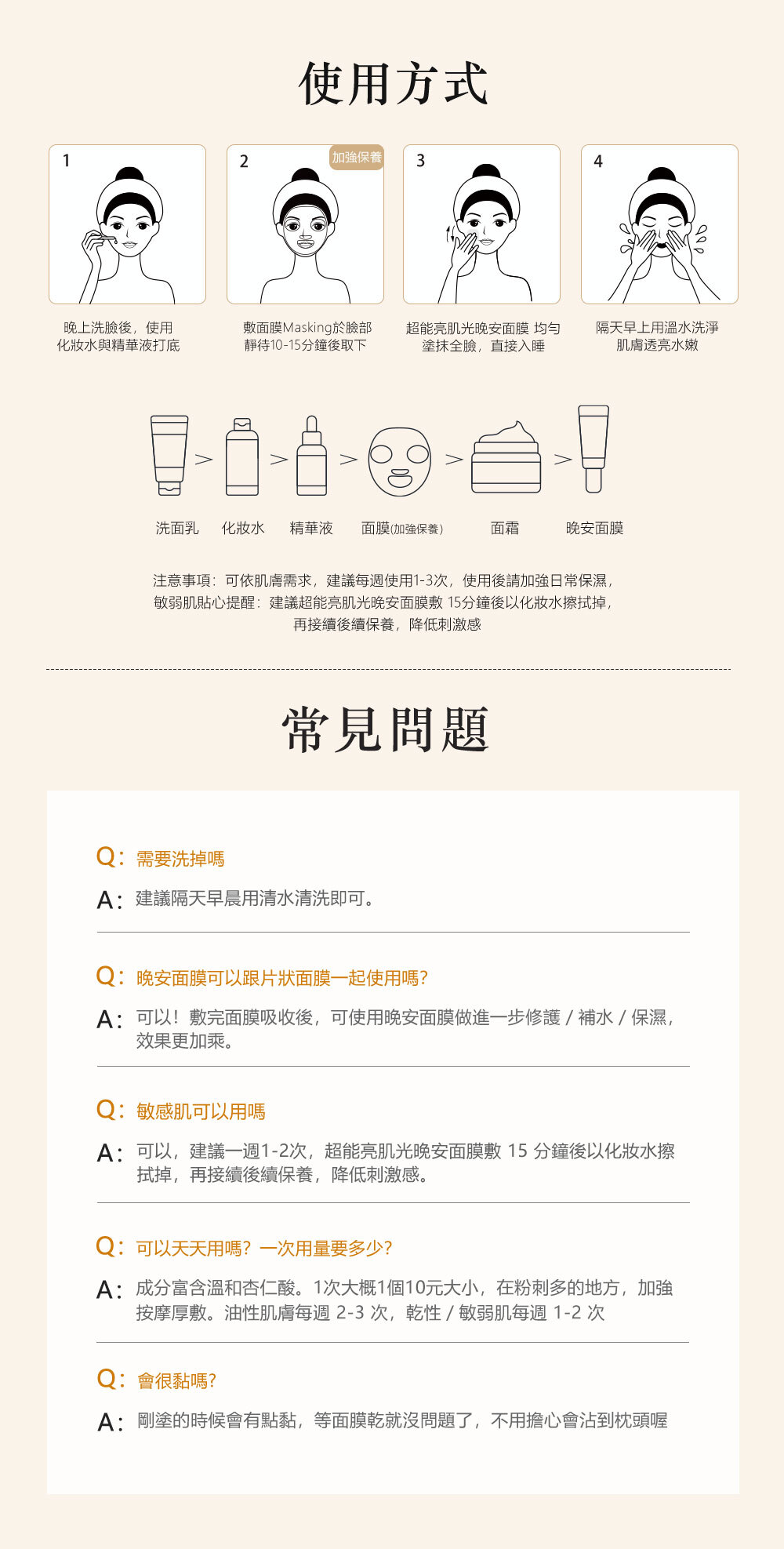 (備註:晚安膜建議於"面膜後"、"睡前"使用)