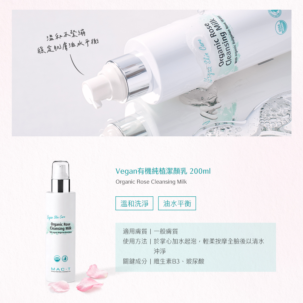 品名:Vegan有機純植潔顏乳 Organic Rose Cleansing Milk
