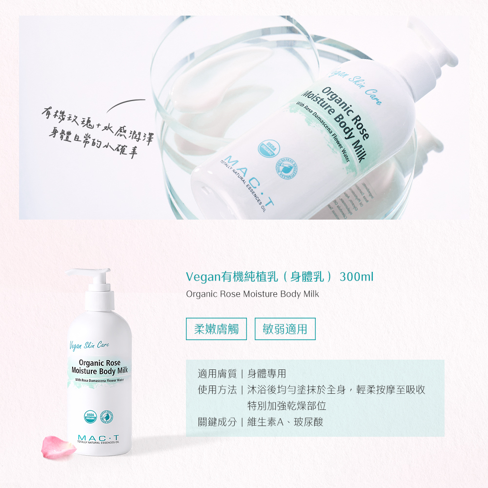 品名:Vegan有機純植乳(身體乳) Organic Rose Moisture Body Milk