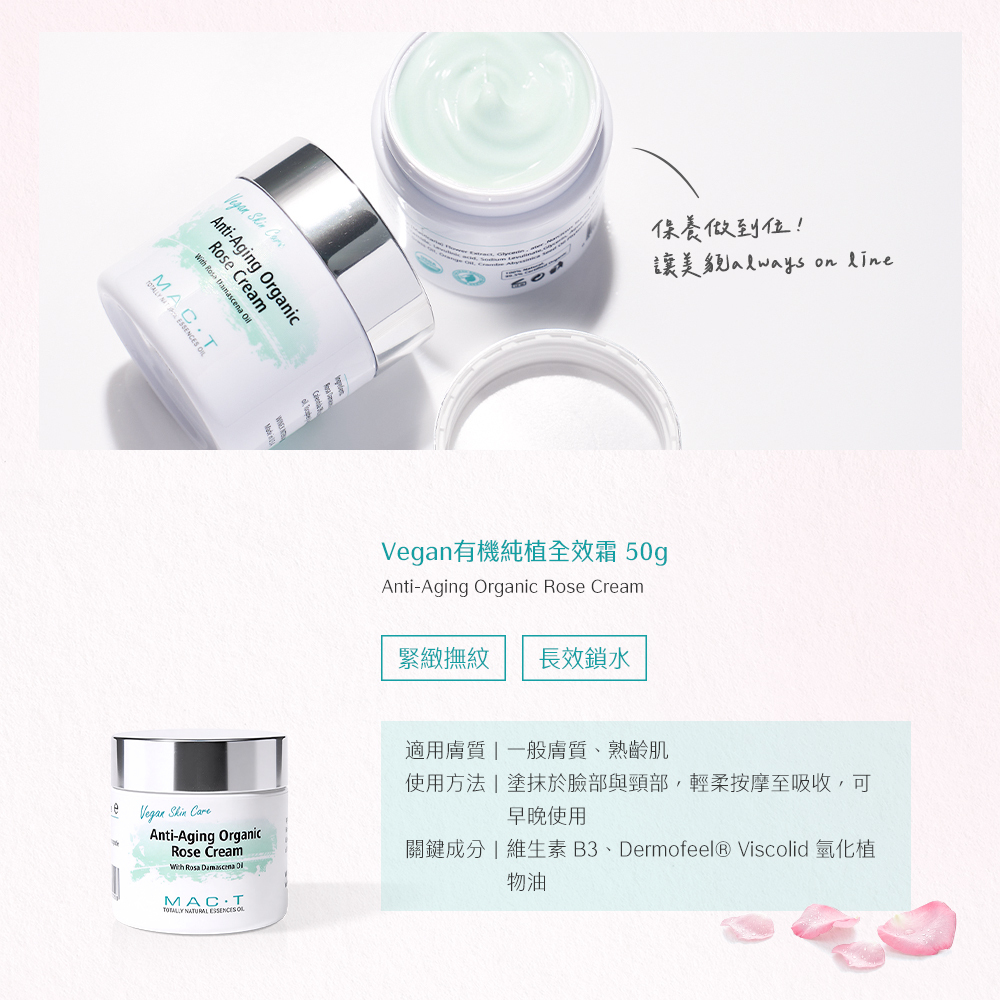 品名:Vegan有機純植全效霜 Anti-Aging Organic Rose Cream