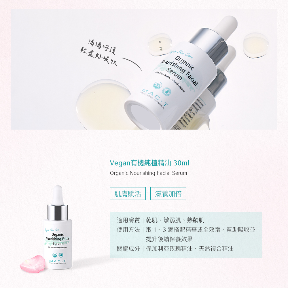 品名:Vegan有機純植精油 Organic Nourishing Facial Serum